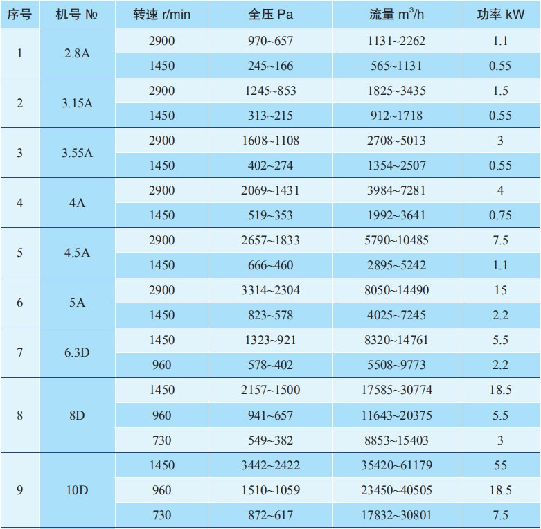 5、如上述機號、出風口角度、傳動方式均不能滿足您生產之需,我廠可以為您設計制造您滿意的風機。
